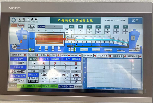 采用先進的PLC控制系統,具有編程靈活、高精度控制、可靠性高等優點。通過編程,可以實現對光亮爐運行狀態的實時監控和調節,確保工藝參數的穩定性和一致性。